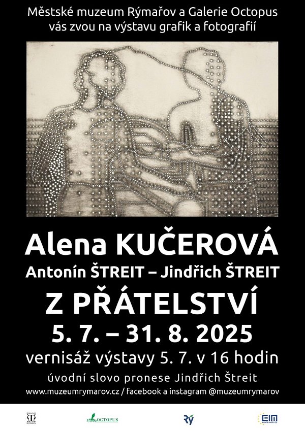 V sobotu 5. července 2025 proběhla v Galerii Octopus rýmařovského muzea vernisáž výstavy grafik významné české umělkyně Aleny Kučerové a fotografií neméně renomovaných Antonína a Jindřicha Štreitových. Výstavu zahájil Jindřich Štreit s Michalem Vyhlídalem.
