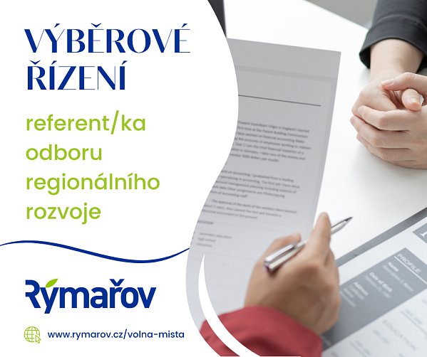Tajemnice Městského úřadu Rýmařov vyhlašuje výběrové řízení na pozici: referenta/referentky odboru regionálního rozvoje. Více na www.rymarov.cz