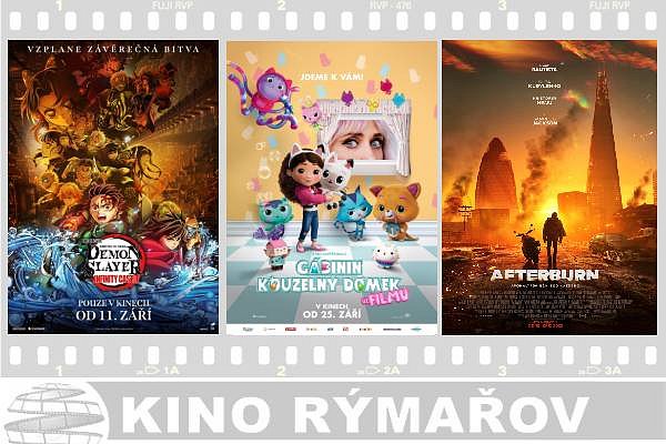 V pátek večer se hraje japonské anime Demon Slayer: Kimetsu no Yaiba Infinity Castle, které je adaptací mangy a zaměřuje se na vyvrcholení bitvy mezi Demon Slayer Corps a Muzanem Kibutsujim. V sobotu odpoledne navštivte americký rodinný film Gábinin kouzelný domek ve filmu. Gábina je na první pohled úplně obyčejná holka. Na pohled druhý ale zjistíte, že vůbec tak obyčejná není... V sobotu večer se promítá postapokalyptické americké akční sci-fi Afterburn. Ve středu večer se hraje drama z prostředí Formule 1 s názvem F1. V pátek dopoledne můžete v rámci v seniorské projekce zhlédnout českou komedii Pod parou.