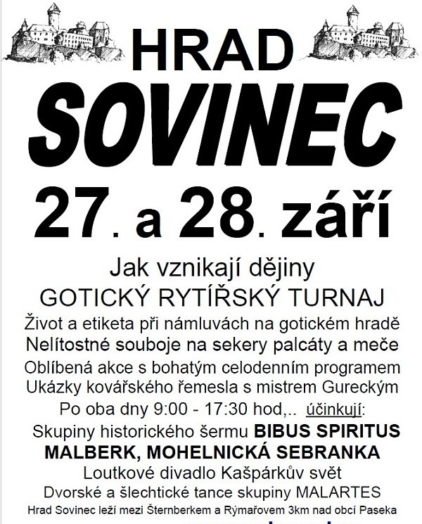 Přijďte se podívat o víkendu 27. – 28. září na gotický rytířský turnaj. Těšit se můžete na nelítostné souboje na sekery, palcáty a meče, na ukázky kovářského řemesla a další.